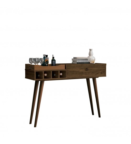 Pés palito em madeira maciça, puxadores em metal Bandeja em madeira com espelho
